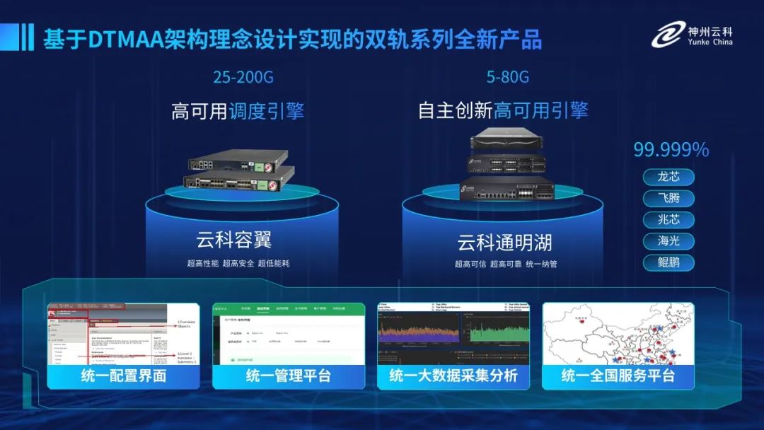 为了更好的适配双轨超高可用架构,尊龙凯时研发了容翼系列和尊龙凯时通明湖信创系列两大应用交付控制器产品。